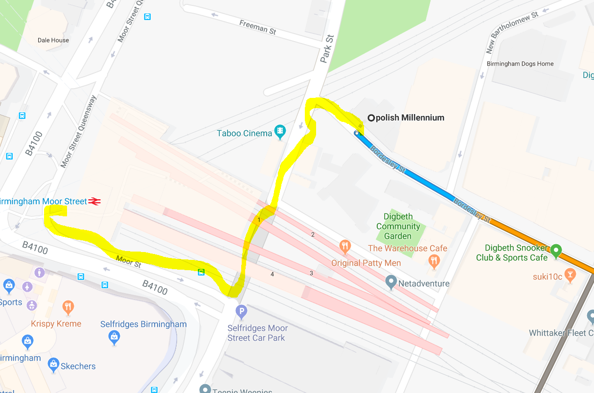 When you arrive in Moor street, it would be great if you could walk to the following location on this map I have attached. As it makes it easier and quicker for me to get to you in the car and then onto the motorway.
